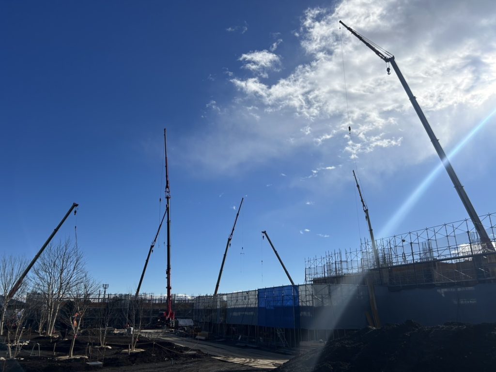 7台中5台はジブ出しを行い、より作業半径を確保しております。